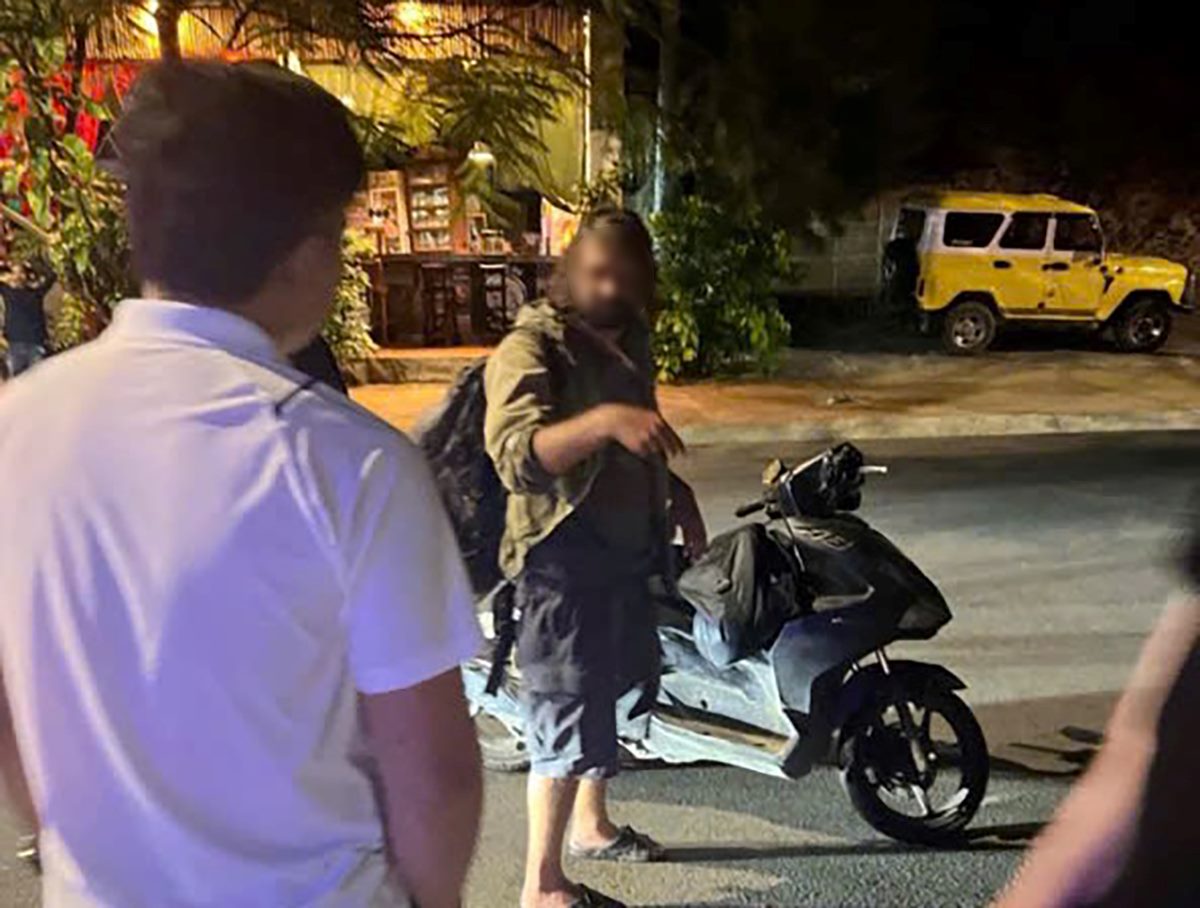 Du khách nước ngoài tại hiện trường vụ va chạm, sau đó dùng hung khí tấn công công an. Ảnh: Người dân cung cấp