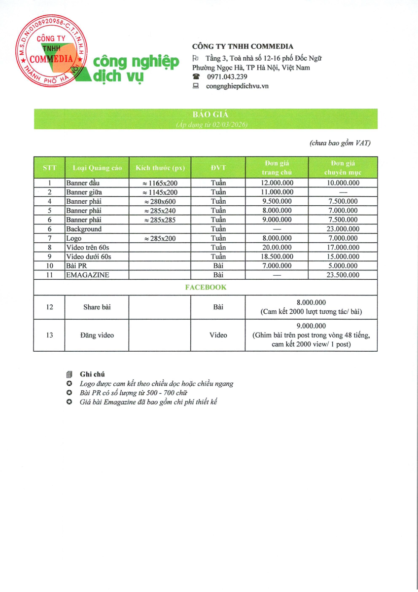 Báo giá quảng cáo website congnghiepdichvu.vn