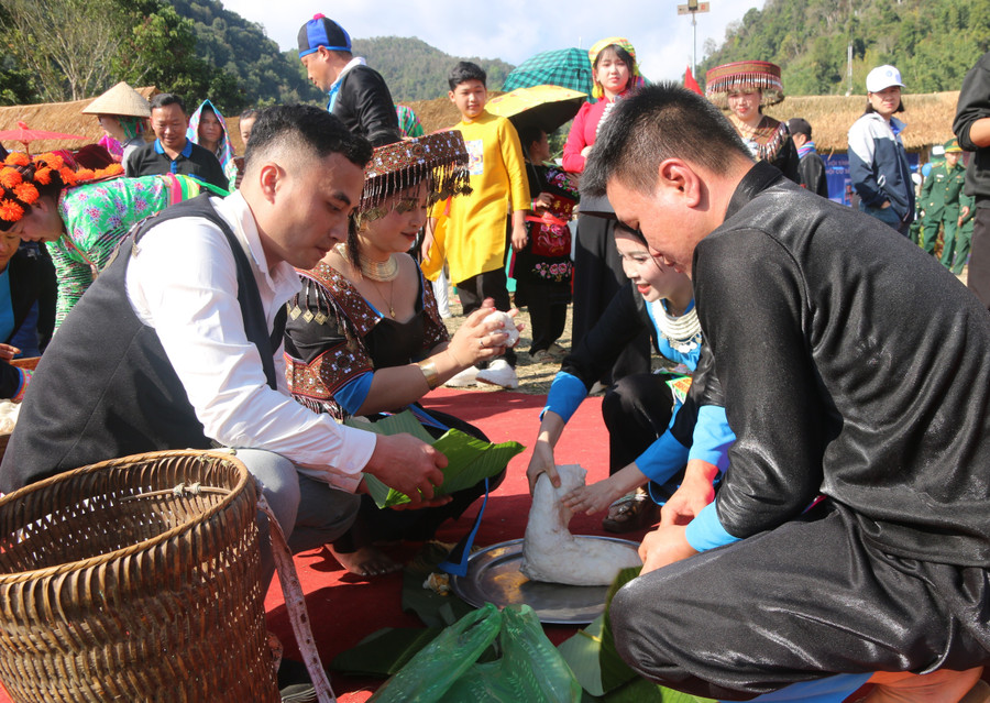 Thi làm bánh giày truyền thống của đồng bào Mông.