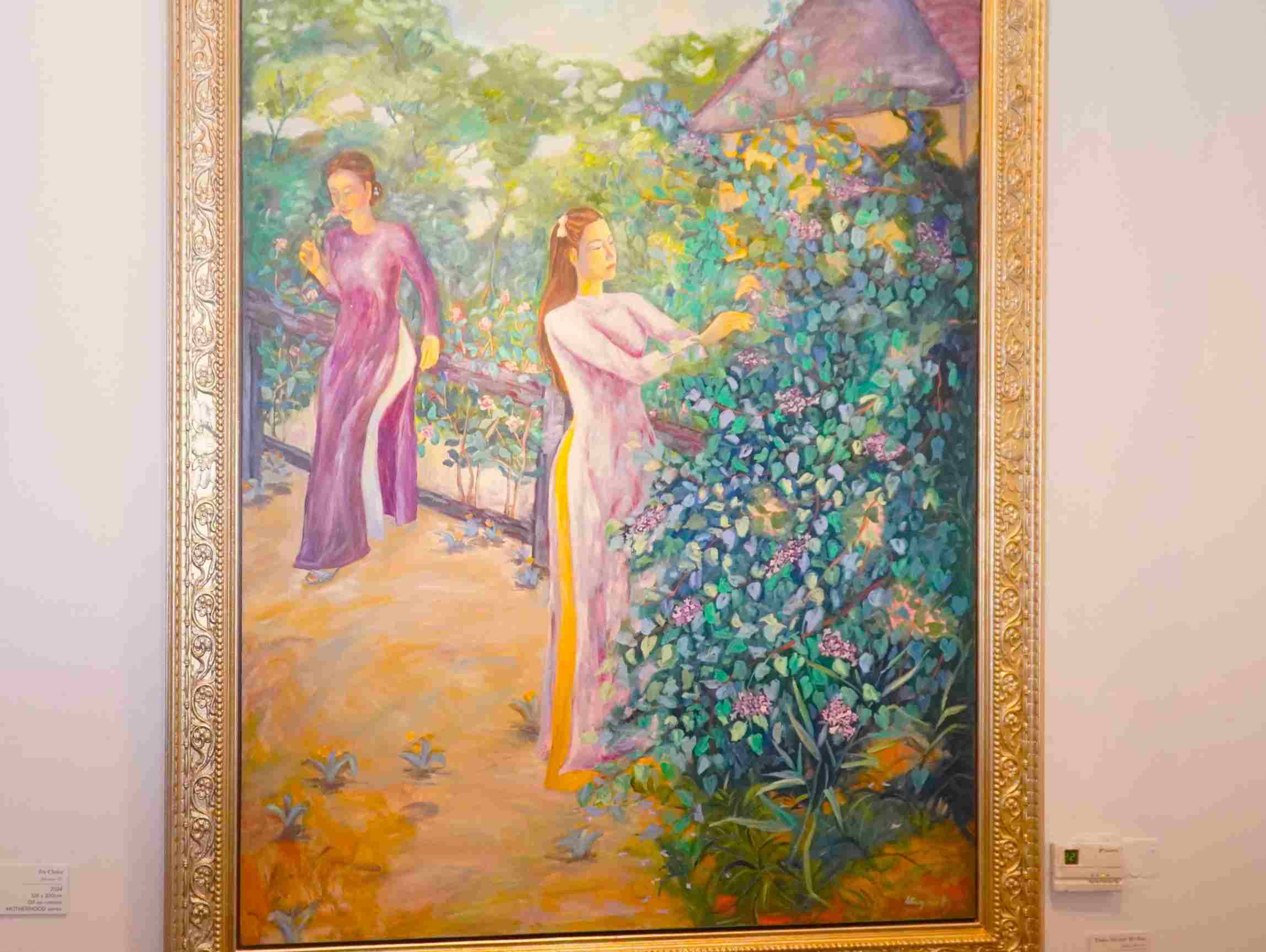 Không gian triển lãm Mộng giữa chiều hoa mang đến cho nhiều du khách cảm giác lắng lại giữa nhịp sống đô thị vội vã. Khi bước qua từng bức tranh, người xem dễ dàng cảm nhận được sự dịu dàng trong màu sắc, sự gần gũi của hình ảnh người phụ nữ, thiên nhiên và tổ ấm, như chạm vào những ký ức quen thuộc của chính mình.