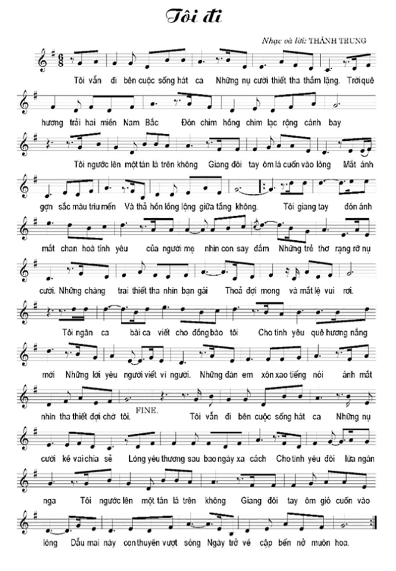 Nhịp 6/8 và cảm thức lữ hành: Tác phẩm viết ở nhịp 6/8 là một lựa chọn giàu ý nghĩa. Nhịp 6/8 thường gắn với chuyển động đung đưa, cảm giác ru nhẹ hoặc bước chân lãng du. Trong “Tôi đi”, 6/8 không mang tính dân ca rõ rệt mà thiên về ballad tự sự. Sự phân nhóm 3+3 tạo dòng chảy mềm mại, phù hợp với chủ đề “đi nhưng không vội”.