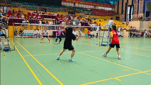 Học sinh thi đấu môn đá cầu tại nhà thi đấu thể thao tỉnh Bắc Ninh.