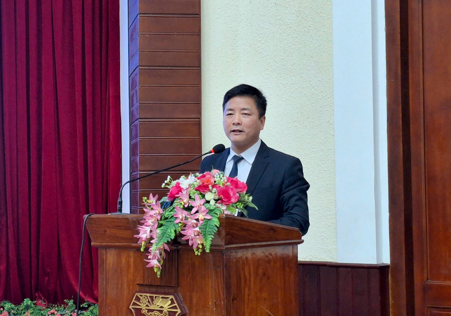 TS Bùi Văn Lợi, Phó Giám đốc Phụ trách Đại học Huế, Chủ tịch Hội Thể thao Đại học và Chuyên nghiệp Huế phát biểu.