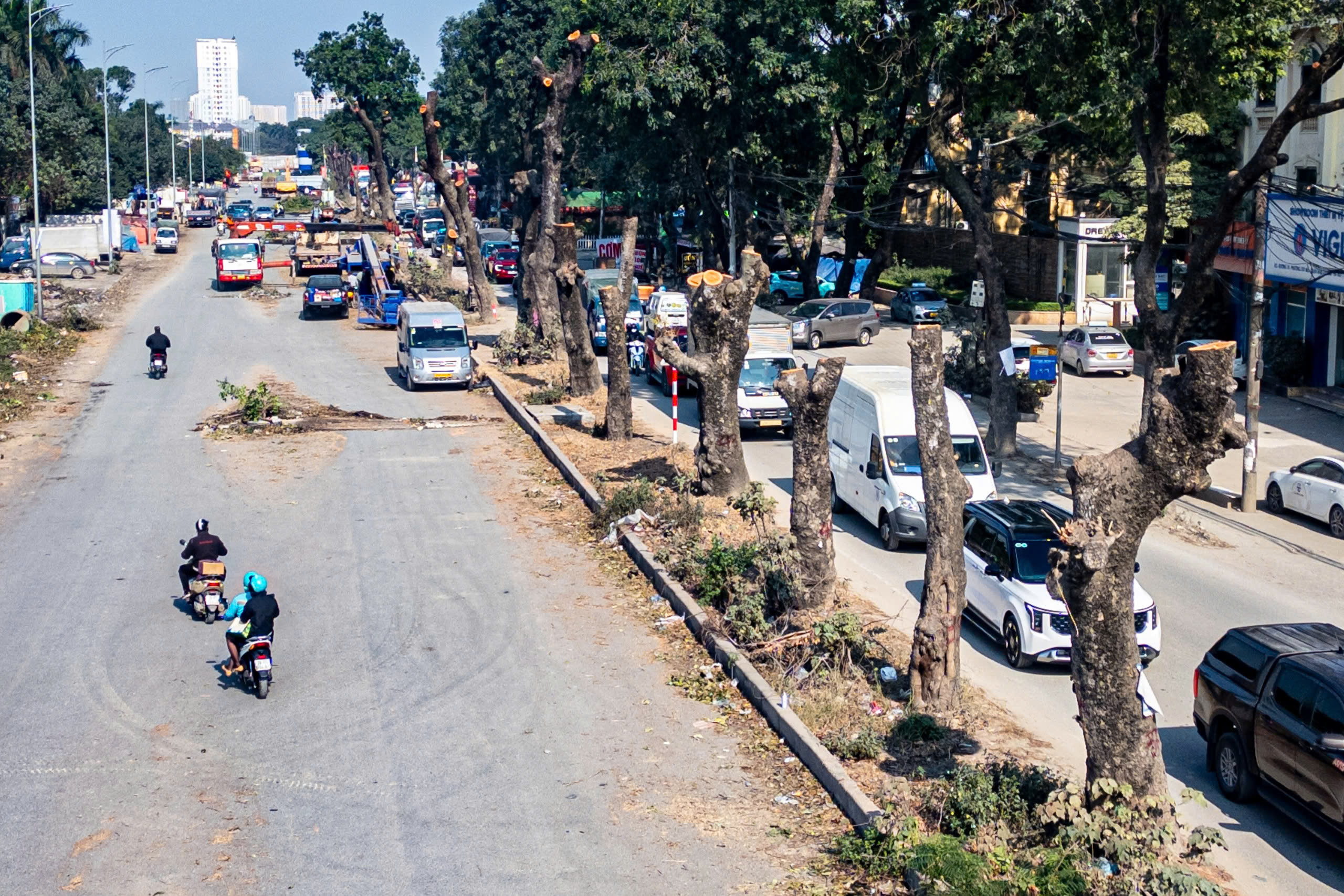 Loạt cây xanh đang được đốn hạ, di dời phục vụ thi công dự án mở rộng đường huyết mạch lên 40-50m nhằm kéo giảm ùn tắc giao thông.