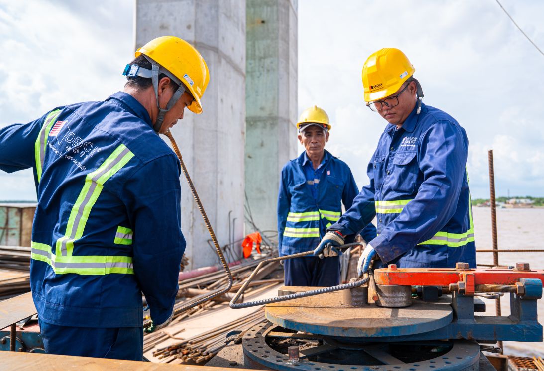 Hơn 400 cán bộ, kỹ sư, công nhân, 150 máy móc thiết bị khẩn trương thi công cầu Đại Ngãi 1, dự kiến hoàn thành vào năm 2028.