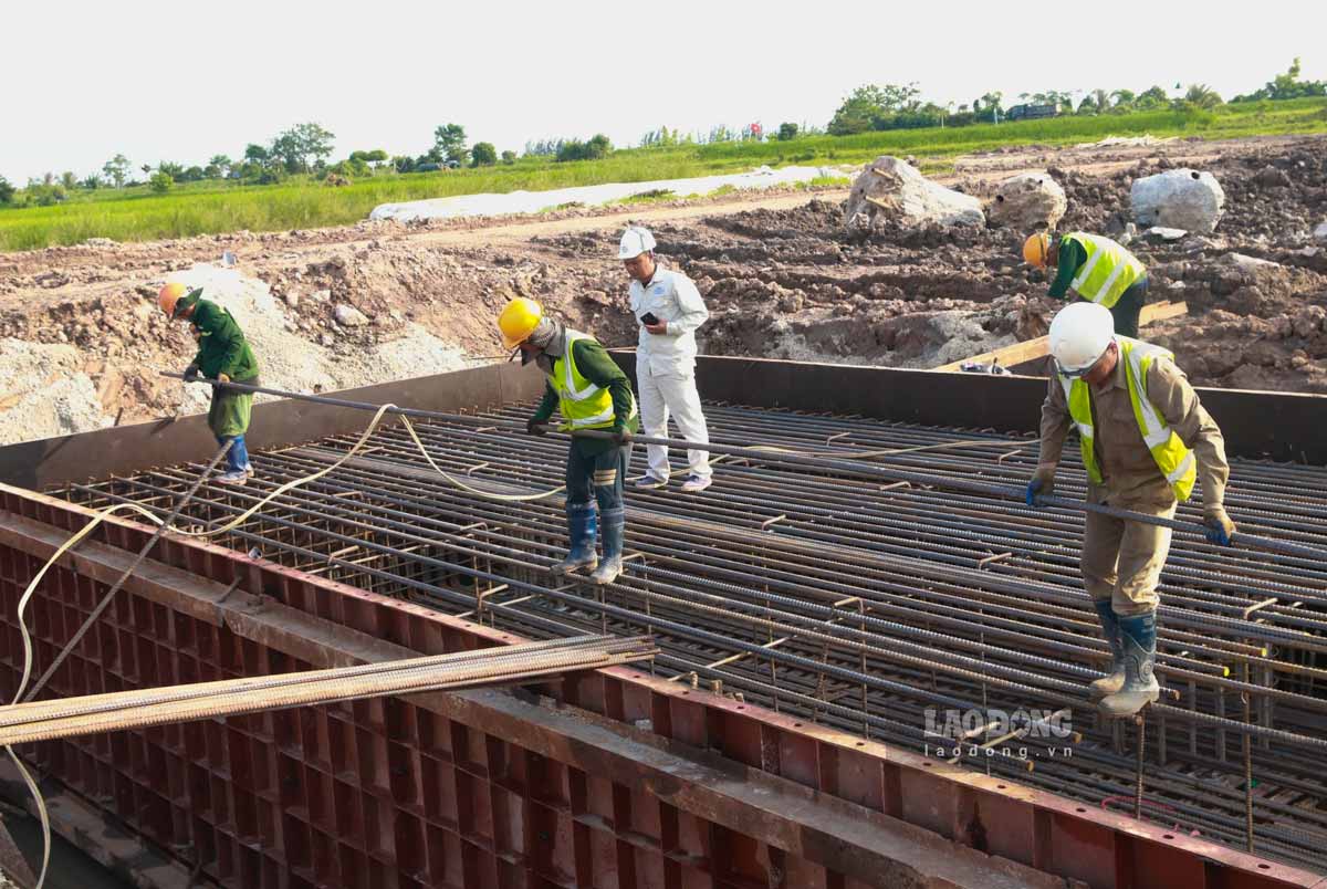 Ghi nhận của PV Báo Lao Động, trên công trường, không khí thi công cao tốc CT.08, đoạn qua địa bàn tỉnh Hưng Yên diễn ra khẩn trương suốt ngày đêm. Hiện tại, các hạng mục đang triển khai chủ yếu là cầu chính trên tuyến.