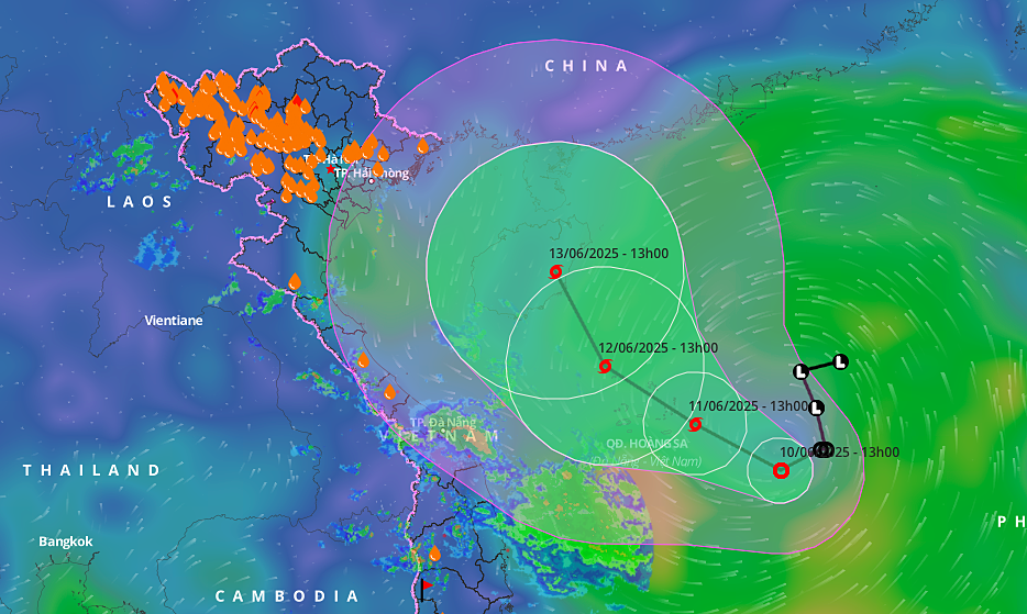 Tới 7h ngày 3/12, tâm áp thấp nhiệt đới ở vào khoảng 13,3 độ Vĩ Bắc-111,0 độ Kinh Đông, thuộc vùng biển Tây Bắc giữa Biển Đông.