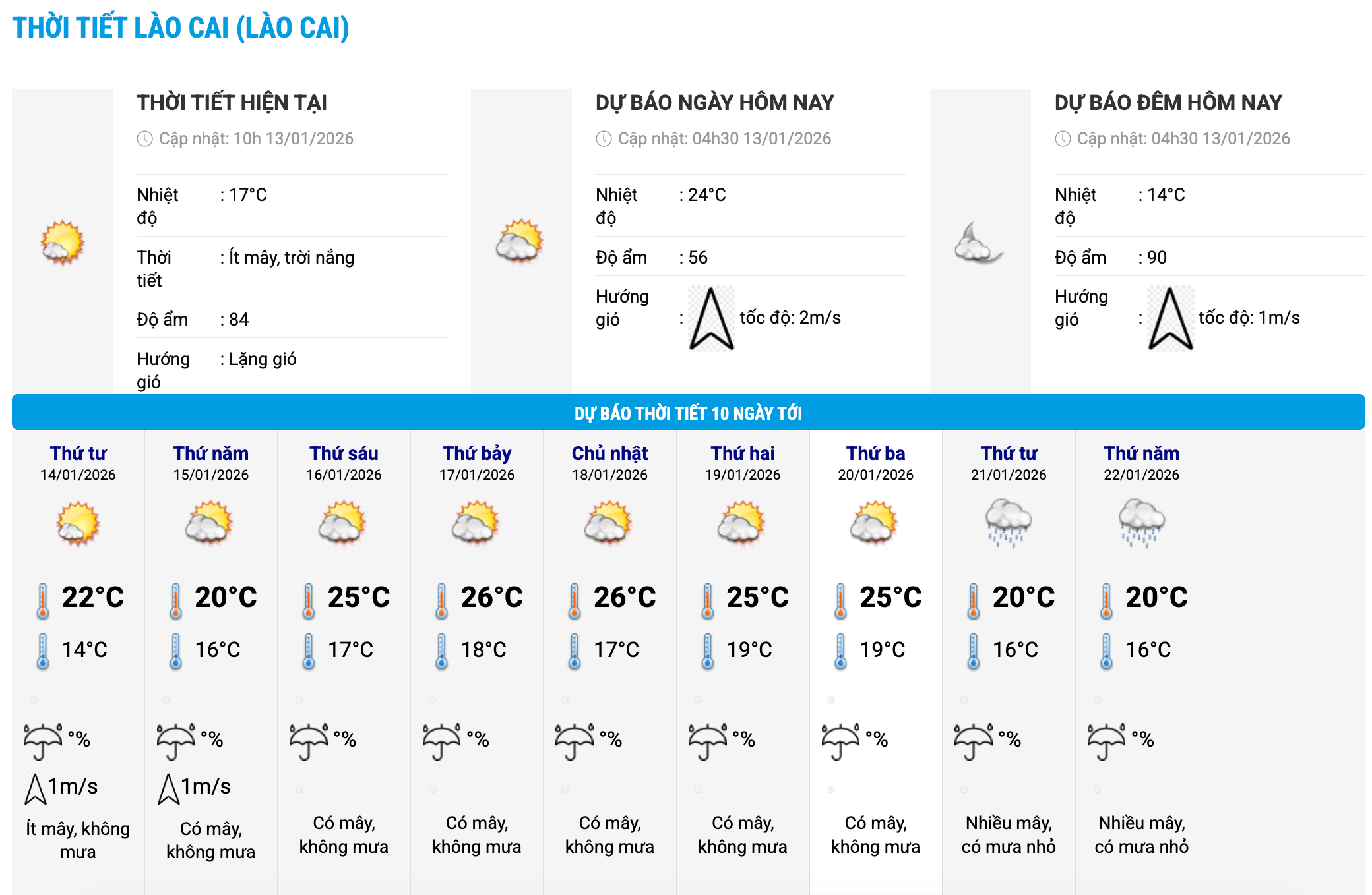 Về diễn biến thời tiết sắp tới, theo cơ quan khí tượng, từ ngày 13 - 20.1, khu vực Bắc Bộ và Bắc Trung Bộ duy trì thời tiết có mưa vài nơi, sáng sớm có sương mù và sương mù nhẹ rải rác, trưa chiều trời nắng. Đêm và sáng trời rét, vùng núi có nơi rét đậm.
