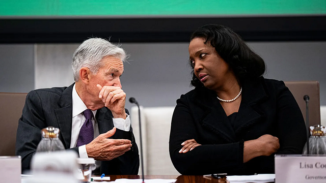 Jerome Powell, Chủ tịch Cục Dự trữ Liên bang Mỹ (Fed), bên trái, và Lisa Cook, Thống đốc Fed, tại cuộc họp công khai của Hội đồng Fed ở Washington, DC, Mỹ, vào thứ Tư, ngày 25/06/2025 |