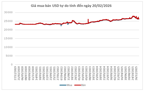 Diễn biến trên thị trường quốc tế cũng được phản ánh khá rõ ở thị trường tự do trong nước. Trước kỳ nghỉ Tết, tỷ giá USD/VND lao dốc mạnh, mất 1,050 đồng/USD ở chiều mua và 1,070 đồng/USD ở chiều bán, xuống vùng 26,200 – 26,250 đồng/USD (mua vào - bán ra). Tuy nhiên, trong tuần nghỉ lễ, tỷ giá đã nhích tăng trở lại 100 đồng/USD ở cả 2 chiều, lên mức 26,300 – 26,350 đồng/USD (mua vào – bán ra).