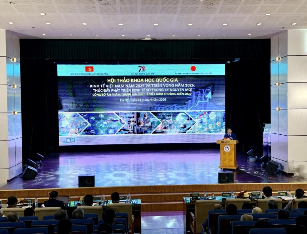 Phát biểu khai mạc hội thảo, PGS.TS. Bùi Huy Nhượng, Giám đốc Đại học Kinh tế Quốc dân cho biết, kinh tế Việt Nam đang ở một ngưỡng chuyển đổi quan trọng, khi các động lực tăng trưởng cũ dần suy yếu, trong khi các động lực mới chưa phát huy đầy đủ vai trò. Vì thế, phát triển kinh tế số trong kỷ nguyên mới không chỉ là câu chuyện ứng dụng công nghệ hay mở rộng quy mô các ngành số, mà thực chất là vấn đề tái cấu trúc mô hình tăng trưởng.