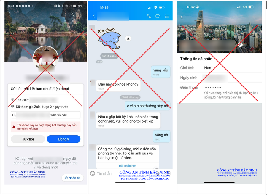 Thời gian qua, nhiều đối tượng lập tài khoản Facebook, Zalo… sử dụng tên, hình ảnh lãnh đạo tỉnh Bắc Ninh để nhắn tin, tạo dựng lòng tin để lừa đảo.