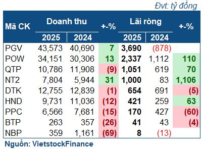 Kết quả nhóm nhiệt điện trong năm 2025 ![]() |
