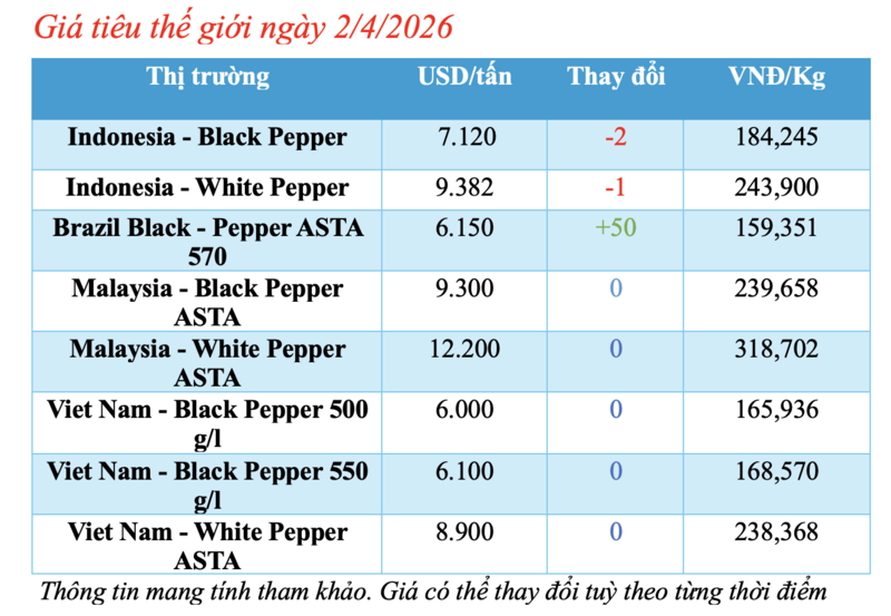 Giá tiêu hôm nay 2/4/2026: Dao động từ 138.000 - 139.000 đồng/kg - 3