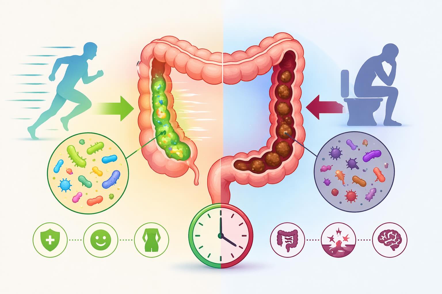 Ngược lại, thời gian vận chuyển quá nhanh cũng không lý tưởng, vì có thể làm giảm sự đa dạng của hệ vi sinh vật. Cả hai trạng thái cực đoan đều tạo điều kiện cho một số nhóm vi khuẩn chiếm ưu thế, làm mất cân bằng hệ vi sinh.