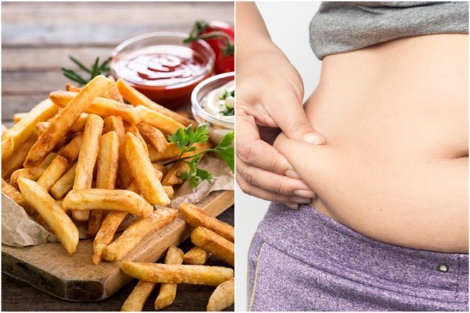 Khoai tây chiên và đồ ăn nhanh giàu chất béo bão hòa, muối và năng lượng, làm tăng nguy cơ viêm mạn tính, kháng insulin và tích mỡ nội tạng. Lượng muối cao còn gây giữ nước, khiến vòng bụng trông to hơn. Khi ăn nhẹ, nên chọn các loại hạt không muối và kiểm soát khẩu phần để tránh nạp thừa calo.